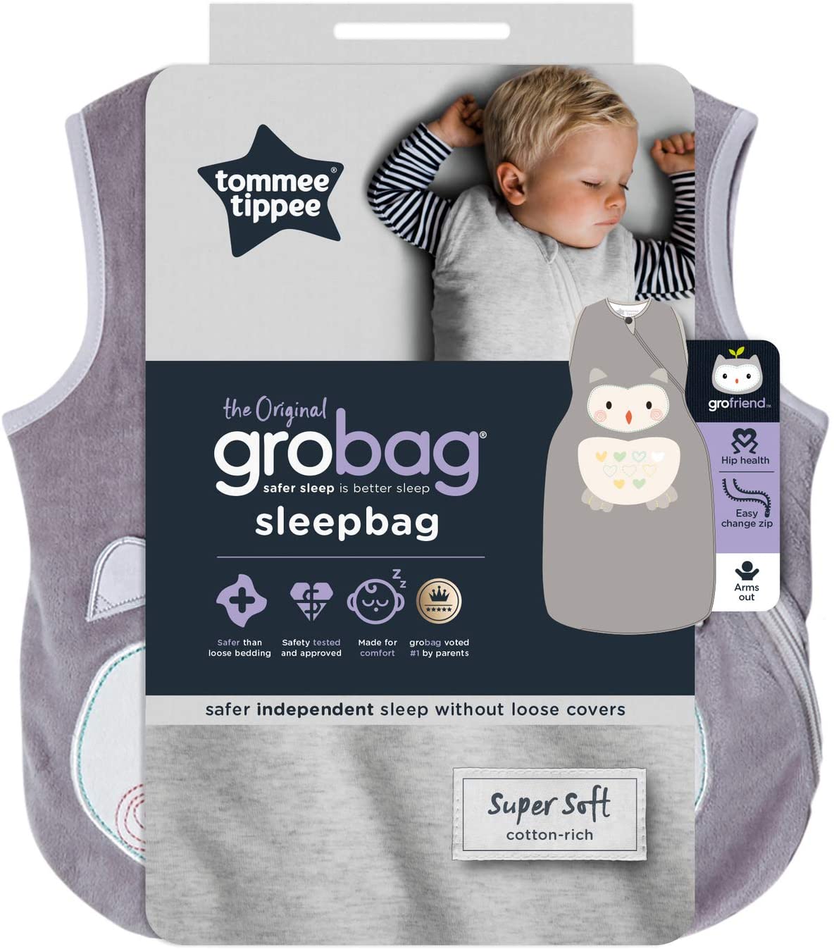 Tommee Tippee The Original Grobag, Baby Sleep Bag, 6-18 months, 1 Tog, Ollie the Owl