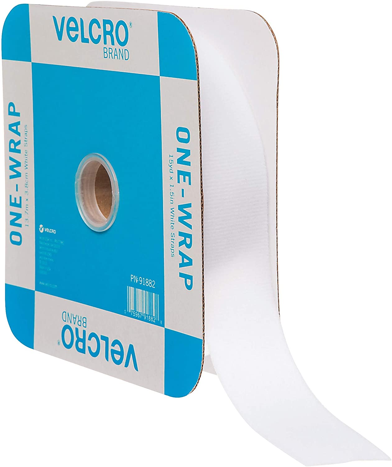 VELCRO Brand ONE-WRAP Bundling Ties – Reusable Fasteners for Keeping Cords and Cables Tidy – Cut-to-Length Roll, 45ft x 1 1/2in, White, 91882
