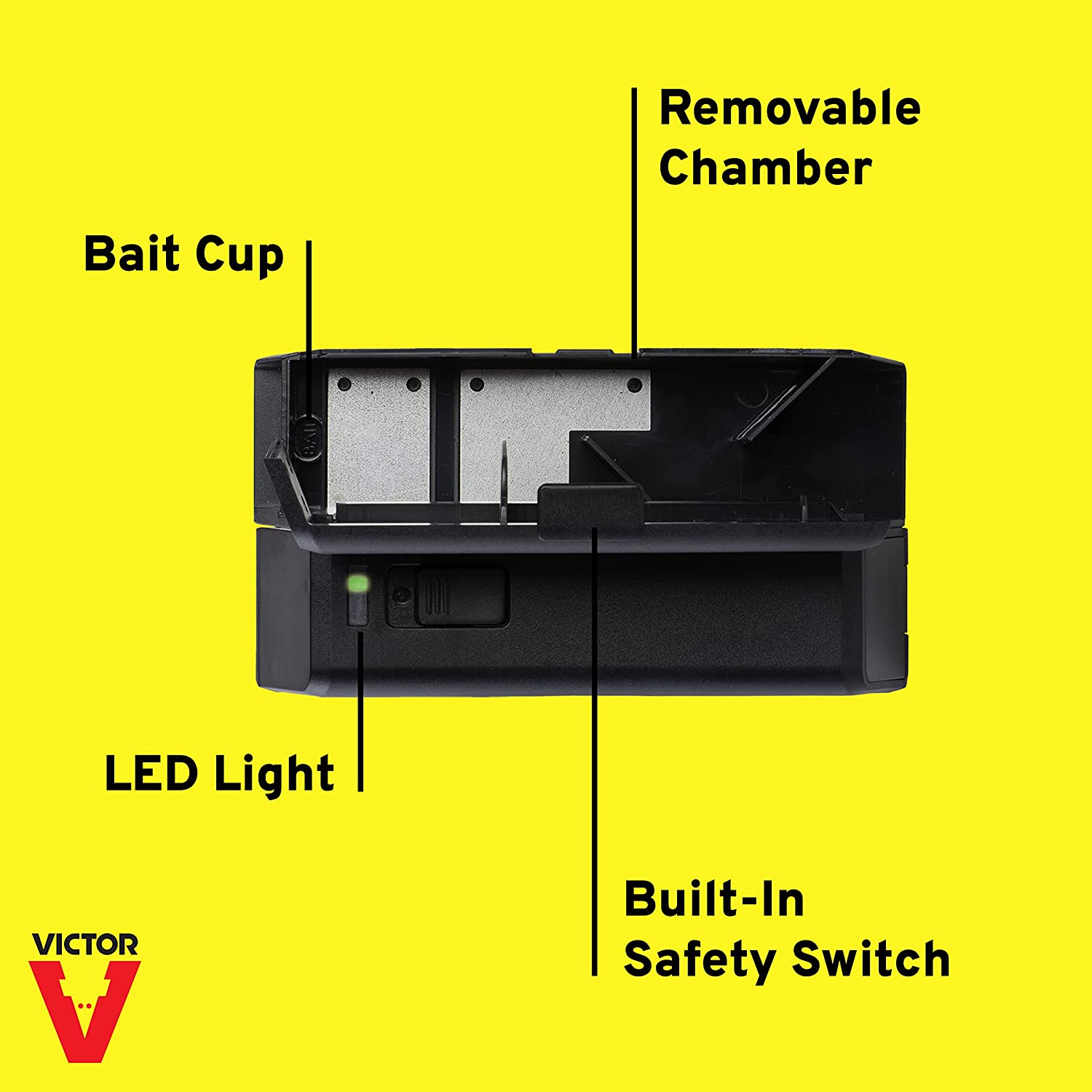 - Built-in Safety Features – A safety switch automatically deactivates the trap when opened, helping to protect children and pets